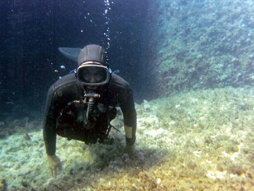 En plongée avec un scaphandre Davis O2 Voir l'album photo de l'auteur Le mot du dictionnaire associé à cette photo ...LoridonLes mots clés du texteCEPHISMER | Dumas | Loridon | maritime | matériel | Musée | plongée | plongeur | subaquatique | Tailliez |Gérard Loridon... devient, en 1953, à l'âge de dix-neuf ans, plongeur professionnel en intégrant la SOGETRAM (Société Générale des Travaux Maritimes et fluviaux), fondée par André Galerne l'année précédente. Deux ans plus tard, en 1954, il incorpore sa vie militaire dans la Marine nationale en tant que plongeur du GERS (organisme qui porte actuellement le nom de CEPHISMER). Dans le cadre du GERS il utilisera le matériel de pointe que la plongée mondiale pouvait offrir à l'époque (comme par exemple le DC 55, l'Oxygers, ou les propulseurs subaquatiques) et il rencontrera les grands noms de la plongée française : le commandant Tailliez, Le Commandant René Chauvin, le pharmacien chimiste principal Perrimond-Trouchet. Aussi Frédéric Dumas, qui intégrait le GERS en tant que contractuel civil.Il sera chef d'entreprise dans les travaux publics sous marins en créant et en gérant la SERMAR à Six Fours... Après sa retraite, qu'il prend en 1990, il fonde en 1994 à Sanary-sur-Mer, avec Barthélemy Rotger, le Musée Frédéric Dumas, consacré à l'archéologie sous-marine et à l'histoire des équipements de plongée. (Texte extrait de Wikipédia)