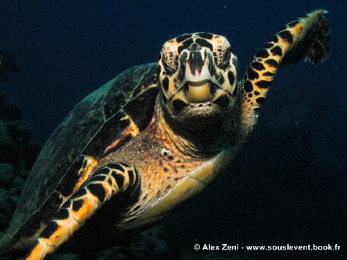 Une tortue imbriquée, photo prise en septembre 2012 aux Ilets Pigeon par -150m. Voir l'album photo de l'auteur Le mot du dictionnaire associé à cette photo ...tortue marineLes mots clés du textearribada | Japon | Méditerranée | mer | Mer Rouge | océan | période | poids | tortue marine | 1 |Les tortues marines sont des chéloniens du sous-ordre des Cryptodires (Cryptodira) et de la superfamille des Chélonioides (Chelonioidea). La plus grande tortue marine est la tortue-luth (Dermochelys coriacea) pouvant mesure plus de de 2,5 m pour un poids dépassant les 800 kg ! Elle est très largement répandue : océans Pacifique, Atlantique et Indien, mer du nord, Méditerranée, mer Rouge, Caraïbes, Mers de Chine et du Japon, etc. Elle fréquente les eaux chaudes et tempérées, ne se rapprochant des côtes que pour la ponte. Parmi les plus connues des tortues de mers, on peut citer aussi : - la tortue caret ou caouanne (Caretta caretta) pouvant atteindre 1,40 m pour 450 kg. - la tortue verte (Chelonia mydas) d'un poids pouvant dépasser 500 kg pour 1,50 m de longueur. - La tortue à écaille (Eretmochelys imbricata) plus petite que les précédentes (90 cm pour 100 à 130 kg). - La tortue de Kemp (Lepidochelys kempii) qui vit essentiellement dans le golf du Mexique. - la tortue olivatre (Lepidochelys olivacea) une des plus petites tortues marines, une des moins connues aussi. Les tortues marines ont en commun la fait de vivre en mer et de se reproduire à terre. A la période de la reproduction et de la ponte elles se rassemblent sur des lieux de nidifications près des côtes, parcourant parfois plusieurs milliers de km pour retrouver leurs congénères, puis sur la plage choisie pondent leurs œufs et les enfouissent dans le sable, donnant ainsi lieu à des migrations spectaculaires (arribadas).