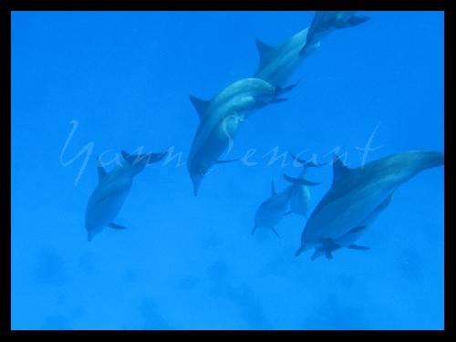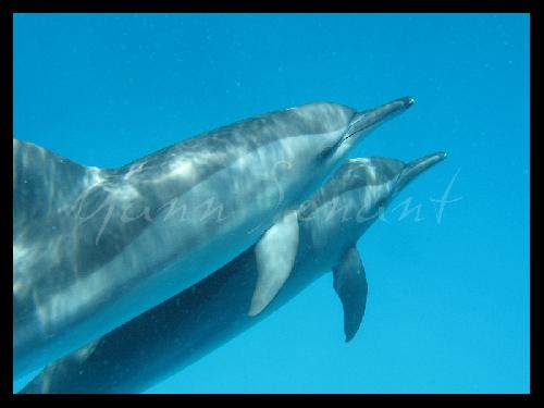 Dauphins. Mer Rouge en Egypte. Voir l'album photo de l'auteur Le mot du dictionnaire associé à cette photo ...dauphinLes mots clés du textebateau | cétacé | dauphin | globicéphale | Méditerranée | mer | odontocète | plongée | poids | profondeur | 1 |Le dauphin, cet animal mythique, fascine l'homme depuis tous temps par son intelligence, et également son comportement "ami". Il demeure l'un de nos animaux préférés, mais il n'est pas évident d'en rencontrer dans leur millieu naturel... D'où malheureusement, la création de nombreux parcs aquatiques où les spectateurs viennent les voir comme "bêtes de cirque". Néanmoins, quatre de ces odontocètes de la famille des cétacés peuvent éventuellement être rencontrés en plongée: - Le Marsouin ou Phoceana phoceana Egalement appelé cochon de mer, il est carctérisé par une tête arrondie, tronquée avec un museau court. Le ventre est clair et le dos gris foncé. Une ligne noire court de la base des nageoires jusqu'à la bouche. Il peut mesurer de 1,5 à 2 mètres et peser jusqu'à 90 kg. Cet animal farouche peut être observé par temps calme, en Méditerranée, en Bretagne, et même dans l'estuaire de la Seine. Sa longévité est de 12 à 16 ans. - Le dauphin des anciens, Delphinus Delphis La tête présente un long museau, fin et aplati, bien démarqué du melon (partie frontale renflée). Son oeuil est cerclé de noir. Son corps est long (1,8 à 2,6 mètres) et fuselé, tandis que son poids peut varer de 90 à 140 kg. L'animal peut atteindre les 45 km/h ! Le dos et les nageoires sont sombres, et le ventre et les flancs sont clairs. Il affectionne le voisinage de l'homme et joue volontier avec les étraves des bateaux. On peut en rencontrer plutôt en Méditerranée. Sa durée de vie est estimée entre 25 et 30 ans. - Le Grand Dauphin, Tursiops truncatus Il est aussi appelé Dauphin à gros nez à cause de son museau court. Le front est particulièrement bombé par un melon très marqué, et la machoire inférieure est légèrement plus longue que la supérieure. Il peut mesurer jusqu'à 4 mètres de long et peser entre 200 et 600 kg ! Sa coloration est plutôt uniforme, grise, avec une tendance plus foncée sur le dos et un ventre clair. D'une durée de vie d'environ 35 ans, c'est une des espèces les plus connues et les plus étudiées car très souvent emprisonnée dans les marinlands. - Le Dauphin Pilote, Globicephala melaena Le globicéphale, comme son nom l'indique (-céphale: tête, globi- : globuleuse), a un front très proéminent qui se raccorde directement à la bouche. La longueur du corps peut atteindre les8 mètres et son poids jusqu'à 4 tonnes! La couleur du corps est noire. Les nageoires pectorales, longues, sont fixées très près de le tête. Une de ses particularités est qu'il sonde : en effet, les globicéphales pourraient atteindre - 1000 mètres de profondeur lorsqu'ils plongent... Ne comptez donc pas en croiser en plongée...... Quelques recommandations: Si d'aventure vous croisez un dauphin, ou un autre animal sauvage, et que vous voulez profiter de cette rencontre, ne vous précipitez pas sur l'annimal, evitez les grands gestes brusques et les cris violents.... Approchez vous calmement et laissez le choix à l'animal. Evitez de toucher leur peau fragile, vous pourriez transmettre à l'animal des bactéries ou des champignons microscopiques qui pourraient parasiter l'animal. Enfin, en cas d'échouage, humectez l'animal rapidement et en permanence, et prévenez les pompiers. N'essayez pas de tirer l'animal par les appendices pour tenter de le remettre à l'eau, et pensez à dégager son évent, seul orifice respiratoire.