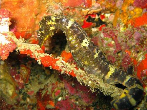 Hippocampe aux Mergui Voir l'album photo de l'auteur Le mot du dictionnaire associé à cette photo ...hippocampeLes mots clés du texteécosystème | Méditerranée | mer | plongée | poisson |L'hippocampe, un être mythique! Allure squelettique, tête de cheval et queue de serpent, l'hippocampe est un drôle d'animal. Nous connaissons tous ce poisson, et pourtant notre savoir est tout relatif... Deux espèces d'hippocampes sont classiquement reconnues sur nos côtes. Il n'est pourtant pas certain qu'elles soient les seules... L'hippocampe à nez court(Hippocampus hippocampus)Mesurant de 9-11 cm (max. 15 cm), on le rencontre de la Manche à l'Afrique de l'Ouest, et dans l'ensemble de la Méditerranée. Il est reconnaissable à son museau court , une crête triangulaire élevée sur la nuque, et un corps souvent d'un brun assez uniforme, parfois foncé, parfois très clair, ou à l'occasion d'un jaune intense. Son corps est parfois parcouru de points et tirets foncés, rarement des mouchetures blanches ; normalement pas de marbrures. Il n'a généralement pas de filaments cutanés (mais ça peut arriver), et un corps d'ordinaire peu épineux. L'hippocampe moucheté(Hippocampus guttulatus)Il mesure entre 10-12 cm (max. 18 cm). On le trouve essentiellement de la Manche à l'Afrique du Nord, mais aussi dans l'ensemble de la Méditerranée. Il possède un museau long, mais pas de crête ni de couronne marquée sur le dessus de la tête. Son corps souvent brun doré, parfois noirâtre, parfois presque blanc, parfois jaune d'or. On peut le reconnaître à ses mouchetures blanches, qui peuvent s'organiser en lignes ondulées et à ses nombreux filaments cutanés, parfois ramifiés sur la tête. L'hippocampe à ramules(Hippocampus ramulosus)Sa taille varierait de 10 à 14 cm. Quant à la distribution géographique de ce spécimen, elle reste à vérifier. L'espèce aurait été repérée dans le sud de l'Angleterre, et on peut donc s'attendre à la rencontrer sur les côtes de la Manche, mais rien n'exclut sa présence ailleurs, y compris en Méditerranée. Il aurait un museau long, une couronne épineuse proéminente à l'arrière de la tête, de fortes épines sur le corps. Les épines du corps et surtout de la tête peuvent être prolongées par de longs filaments cutanés. L'hippocampe terne(Hippocampus fuscus)Mesurant entre 10-12 cm (max. 18 cm), il est originaire de l'Ouest de l'Océan Indien et de la Mer Rouge, mais on le retrouve désormais en Méditerranée Orientale. Il est reconnaissable à un museau assez court, et une crête triangulaire arrondie, rugueuse, sur le dessus de la tête. Surtout, il arbore des tâches claires (sombres chez les individus clairs) en forme de selles sur la nuque, le dos et la queue. En bref, plus on examine les hippocampes croisés en plongée, dans différents endroits, différents milieux, et plus on leur trouve de différences.... On ne connaît pas grand chose des hippocampes de nos côtes et il existe moins d'une dizaine de travaux scientifiques sur leur écologie et leur comportement. D'ailleurs, les spécialistes ne sont pas catégoriques quant au nombre d'espèces présentes en Europe ! Par contre, une chose est sûre: les hippocampes sont en voie de raréfaction à l'échelle du globe, ils sont surexploités pour la médecine chinoise, leurs habitats souffrent de dégradations multiples.... il est donc désormais important de sensibiliser le public à la préservation des hippocampes européens. Mais il est tout aussi urgent de les étudier, d'estimer leurs populations, la fragilité de leurs écosystèmes.