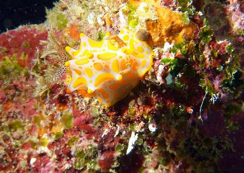 Nudibranche à Poindimié en Nouvelle-Calédonie Voir l'album photo de l'auteur Le mot du dictionnaire associé à cette photo ...nudibrancheLes mots clés du texteéponge | corail | gastéropode | gorgone | mer | nudibranche | plongeur | rhinophore | tunicier |Les nudibranches sont des mollusques marins faisant parties de l'ordre des gastéropodes (famille des escargots et des limaces). Nudibranche signifie « ouïes nues » en latin : l'animal est caractérisé par la présence de ses branchies dites plumeuses nues, non protégées par une coquille. Ses branchies sont donc visibles dorsalement où elles forment une structure s'apparentant à un buisson. Sur le dos, l'animal arbore également des tentacules (prolongement tégumentaire) : les papilles dorsales. Les nudibranches sont répertoriés en quatre sous ordres : - les Doridiens : le panache branchial se trouve à l'arrière du manteau - les Dendronotacées : les appendices branchiaux se trouvent à la périphérie du manteau - les Arminacées : la surface du manteau est ridée et parfois plus large - les Eolidiens : l'animal est couvert de nombreuses papilles, dites des cérates Particularité : Cet animal hermaphrodite a des tentacules antérieures, les rhinophores (rino = nez / phorein = porter), qui sont des antennes sensorielles et détectent le bruit, les odeurs et permettent le goût. Les rhinophores peuvent être lisses, annelés, lamellés ou enflés. Les yeux des nudibranches sont en profondeur, prochent du cerveau, et ne servent qu'à détecter les variation de lumières, par exemple l'ombre d'un gros prédateur ou les variation jour/nuit. Des éponges, hydraires, tuniciers, gorgones, sous les pierres et parfois même du corail mort, peuvent constituer l'habitat du nudibranche. L'oeuil affuté du plongeur le repèrera aisément, on compte de nombreuses espèces dans toutes les mers tempérées du globe.