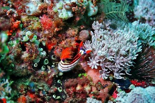 Nudibranche Nembrotha Voir l'album photo de l'auteur Le mot du dictionnaire associé à cette photo ...nudibrancheLes mots clés du texteéponge | corail | gastéropode | gorgone | mer | nudibranche | plongeur | rhinophore | tunicier |Les nudibranches sont des mollusques marins faisant parties de l'ordre des gastéropodes (famille des escargots et des limaces). Nudibranche signifie « ouïes nues » en latin : l'animal est caractérisé par la présence de ses branchies dites plumeuses nues, non protégées par une coquille. Ses branchies sont donc visibles dorsalement où elles forment une structure s'apparentant à un buisson. Sur le dos, l'animal arbore également des tentacules (prolongement tégumentaire) : les papilles dorsales. Les nudibranches sont répertoriés en quatre sous ordres : - les Doridiens : le panache branchial se trouve à l'arrière du manteau - les Dendronotacées : les appendices branchiaux se trouvent à la périphérie du manteau - les Arminacées : la surface du manteau est ridée et parfois plus large - les Eolidiens : l'animal est couvert de nombreuses papilles, dites des cérates Particularité : Cet animal hermaphrodite a des tentacules antérieures, les rhinophores (rino = nez / phorein = porter), qui sont des antennes sensorielles et détectent le bruit, les odeurs et permettent le goût. Les rhinophores peuvent être lisses, annelés, lamellés ou enflés. Les yeux des nudibranches sont en profondeur, prochent du cerveau, et ne servent qu'à détecter les variation de lumières, par exemple l'ombre d'un gros prédateur ou les variation jour/nuit. Des éponges, hydraires, tuniciers, gorgones, sous les pierres et parfois même du corail mort, peuvent constituer l'habitat du nudibranche. L'oeuil affuté du plongeur le repèrera aisément, on compte de nombreuses espèces dans toutes les mers tempérées du globe.