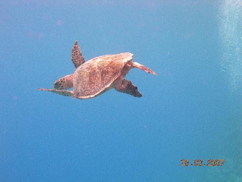 tortue vole Voir l'album photo de l'auteur Le mot du dictionnaire associé à cette photo ...MaldivesLes mots clés du texteanémone | atoll | baleine | baliste | barracuda | corail | courant | Maldives | manta | napoléon | nudibranche | plongée | plongeur | poisson | réchauffement | récif | rémora | raie | requin | thon | tuba |Formées d'un millier de petites îles réparties en 26 atolls du Nord au Sud, les Maldives sont le paradis des activités nautiques et notamment de la plongée. Seules 200 de ces îles sont habitées par une population cosmopolite formée d'indiens, d'arabes et d'africains, dont la langue est le divehi. Les atolls de Malé Nord, Male Sud, Ari, Felidhu, Mulaku ou Vattaru comptent parmi les plus réputés. Si les récifs des Maldives ont été touchés en 97/98 par le phénomène de réchauffement des eaux dû à El Nino, nous assistons depuis à une repousse spectaculaire des coraux et les sites redeviennent superbes. La plongée aux Maldives La plongée se pratique toute l'année, avec en principe, des mois plus pluvieux en mai/juin et octobre/novembre. Il existe de nombreux centre de plongée aux Maldives, presque un sur chaque île. La plongée permet d'y découvrir de merveilleux coraux. Plongée tuba ou plongée bouteille, les Maldives sont réputées pour leurs sites de plongée exceptionnels, une destination incontournable pour les mordus de plongée. Chaque plongée y est un émerveillement, qu'elle se déroule sur des sites secrets ou sur des spots plus connus tels que : - Rashdoo et ses requins marteaux - Halaveli et son épave abritant, selon les moments, un banc de centaines de rémoras ou des pastenagues qui viennent jouer avec les plongeurs - Maaya Thila, un récif abritant une vie d'une richesse incroyable - la passe de Guraidhoo et ses dizaines de requins qui chassent dans le courant - ou Manta Point, station de nourrissage et de nettoyage pour les raies manta. Les Maldives regorgent de surprises: tortues, raies mantas, raies pastenagues et raies aigles, requins gris, pointes blanches, requins marteaux, et parfois même requins baleines. Y seraient presques "communs", les napoléons énormes, bancs de barracudas, de platax, de thons et carangues ; une multitude de petits poissons de récifs, poissons anges, balistes, balistes clowns, poissons clowns et anémones colorées, lutjans, chirurgiens, et nudibranches. Amateur de nudibranches et de macro-faune ou de "grosses bêtes", les Maldives laissent un souvenir inoubliable. Chaque année, raies manta, requin-baleine et différentes sortes de requins sont au rendez-vous quasiment toutes les semaines. Les plongées sont souvent profondes et dans le courant mais les Maldives restent une destination plongée haut de gamme.